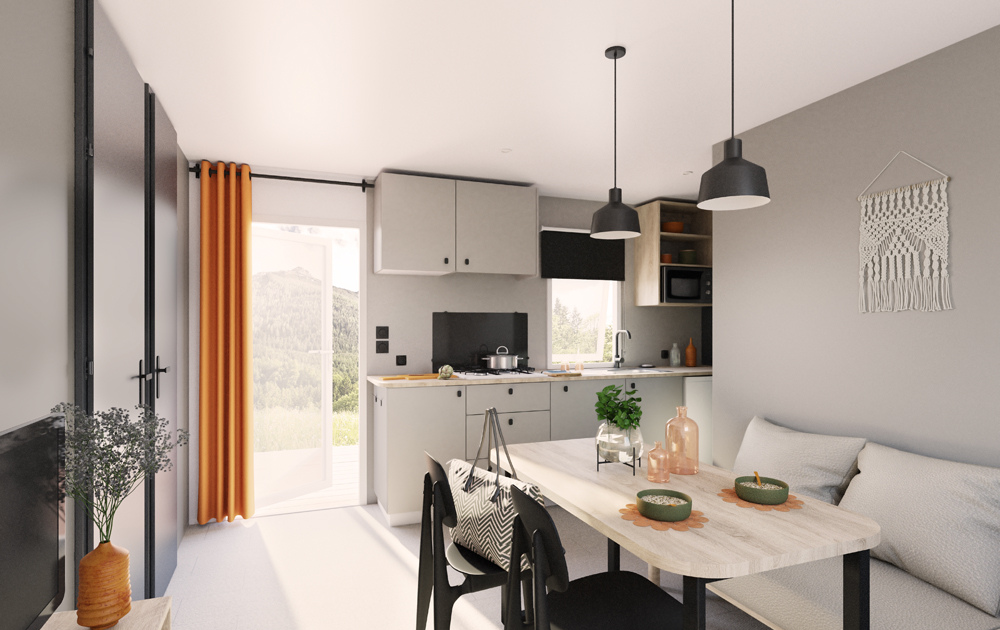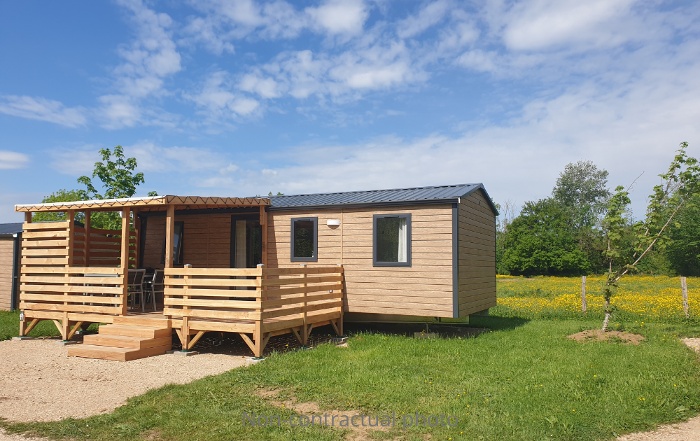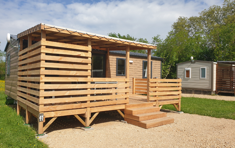 If you are looking for a combination of comfort and a relaxing break in the open air, a mobile home holiday at Camping Vert Auxois in Côte d’Or is the ideal choice! After a day packed with walks and sightseeing, you can sit back on your very own patio and listen to the birds singing, or take a refreshing dip in the pool. Each of our mobile homes is situated in a pleasant verdant setting.